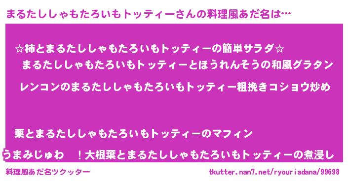 | 女子向けラノベタイトル風あだ名 | 『まるたししゃもたろいもトッティーなんてお断りですっ。』 |