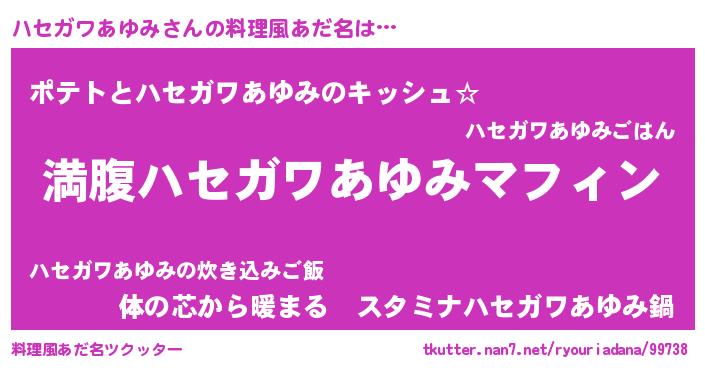 | 意味不明あだ名 | 『永久保存ハセガワあゆみ』 |