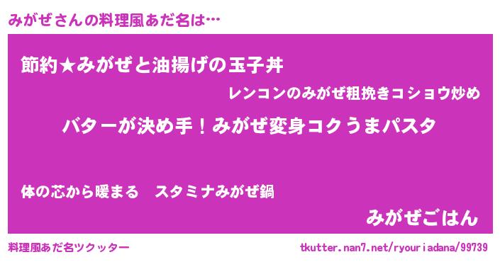 | 女子向けラノベタイトル風あだ名 | 『みがぜ恋絵巻』『みがぜ姫と円卓の騎士』 |