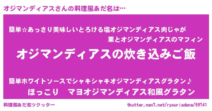 | 胡散臭い通販商品みたいなあだ名 | 『来世でも幸せになれる健康食品…その名も「オジマンディアス」』 |
