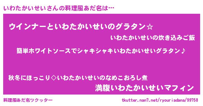 | 女子向けラノベタイトル風あだ名 | 『いわたかいせい様がみてる』 |