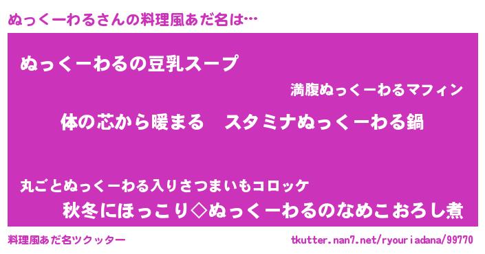 | 男性向けラノベタイトル風あだ名 | 『やはりぬっくーわるの青春ラブコメはまちがっている 』 |