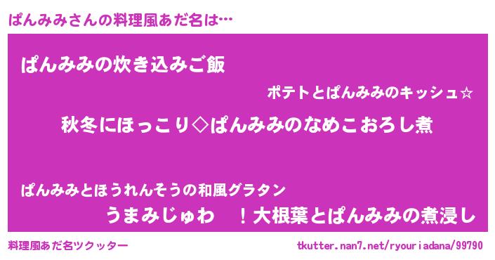 | ヒーロー風カッコイイあだ名 | 『ウルトラぱんみみマン』『幻影騎士パン』 |