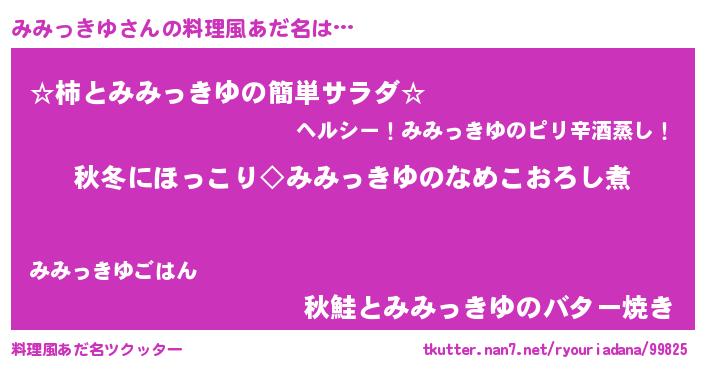 | 意味不明あだ名 | 『永久保存みみっきゆ』『自称みみっきゆ』 |