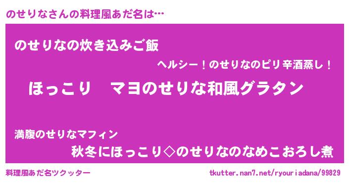 | 意味不明あだ名 | 『住所不定無職のせりな(91歳)』 |