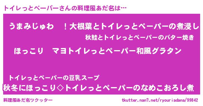 | 意味不明あだ名 | 『住所不定無職トイレっとペーパー(81歳)』 |
