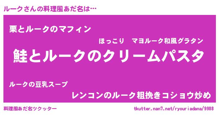 | ヘコむあだ名 | 『ルーを』『ルーク(笑)』『つくし』 |