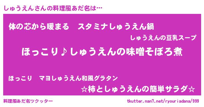 | 胡散臭い通販商品みたいなあだ名 | 『必ず成功する水晶球…その名も「しゅうえん」』 |