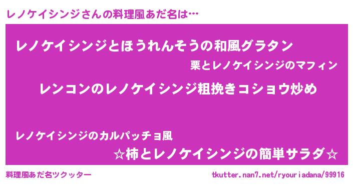 | ヒーロー風カッコイイあだ名 | 『ウルトラ戦士レノケイシンジ』 |