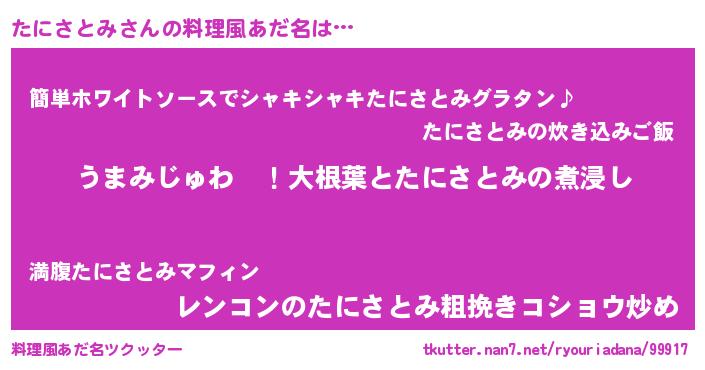 | ポケモン風あだ名 | 『タニサダネ』『ヒタニサトミ』 |