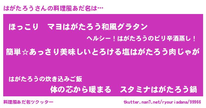 | ヘコむあだ名 | 『はがたろう(爆)』『レバニラ』 |