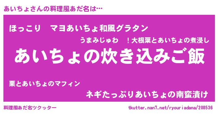 | 意味不明あだ名 | 『住所不定無職あいちょ(65歳)』 |