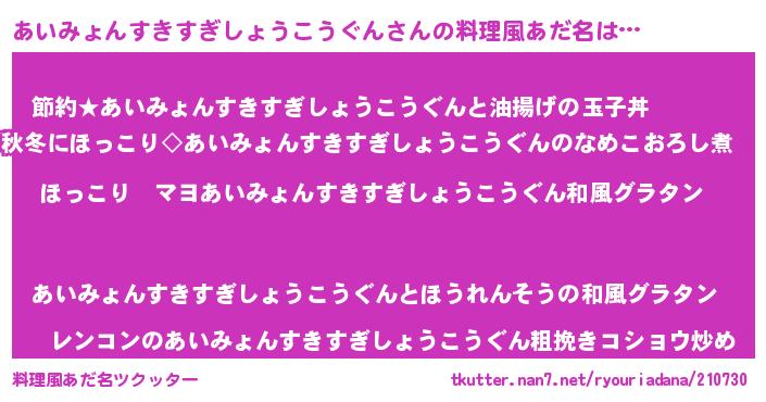 | 欧米人風あだ名 | 『ダレノガレあいみょんすきすぎしょうこうぐん』 |