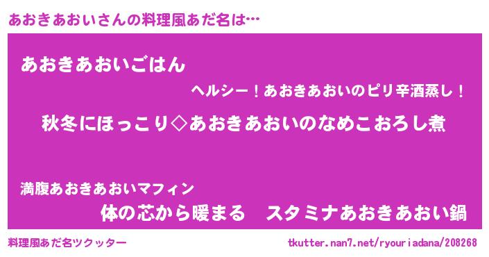| ヘコむあだ名 | 『なまこ酢』『あおきあおい(笑)』 |