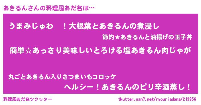 | 意味不明あだ名 | 『永久保存あきるん』『自称あきるん』 |