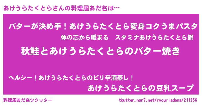 | 意味不明あだ名 | 『永久保存あけうらたくとら』 |