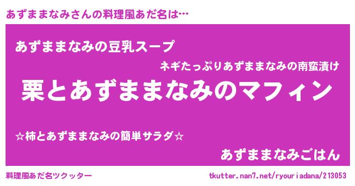 | 意味不明あだ名 | 『とにかく怪しいあずままなみ』 |
