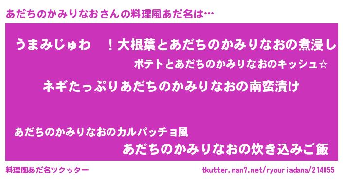 | 男性向けラノベタイトル風あだ名 | 『アダチノカミリナオアートオンライン』 |