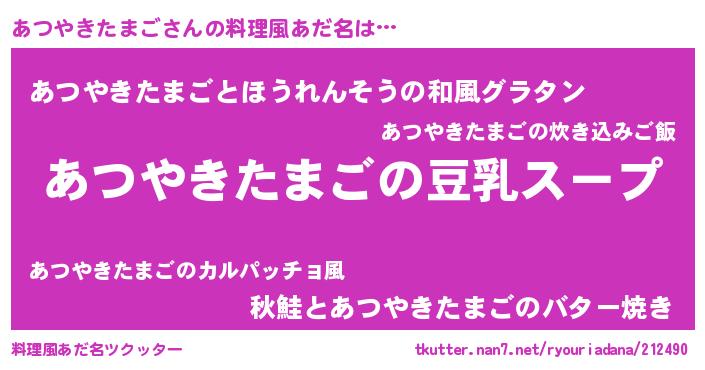 | 意味不明あだ名 | 『とにかく怪しいあつやきたまご』 |