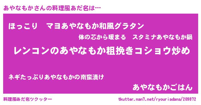 | 意味不明あだ名 | 『自称あやなもか』『ペロリンあやなもか』 |