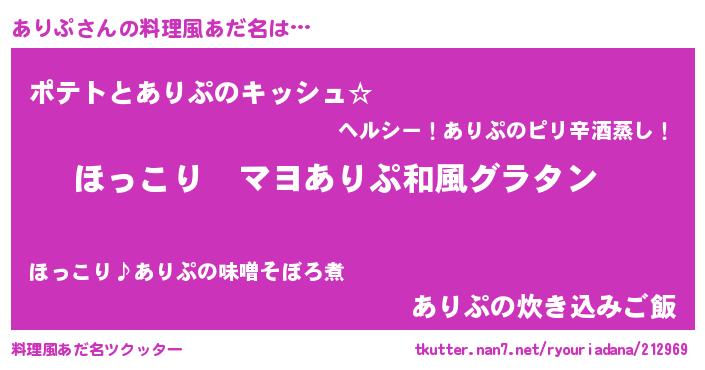 | 可愛いあだ名 | 『ぽよあり』『あっりぃー』 |