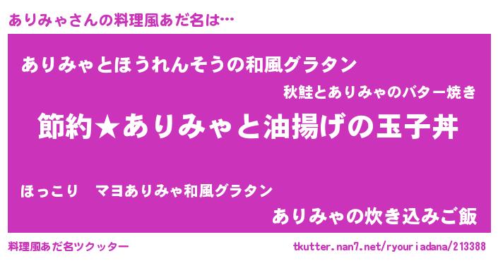 | ヘコむあだ名 | 『ありふぇ~』『ありみゃ(小並感)』 |