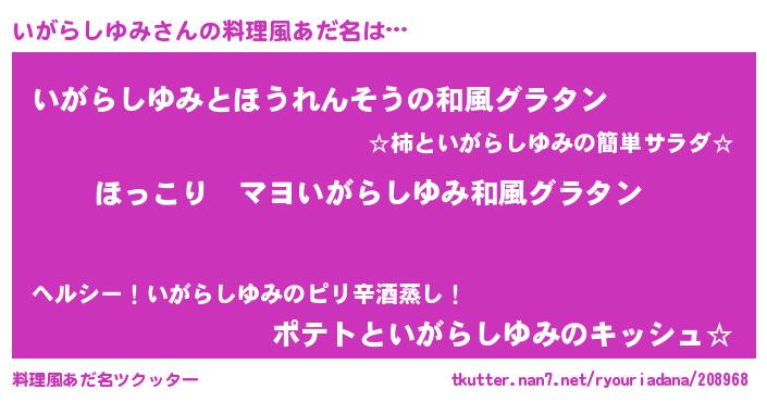 | 意味不明あだ名 | 『住所不定無職いがらしゆみ(4歳)』 |