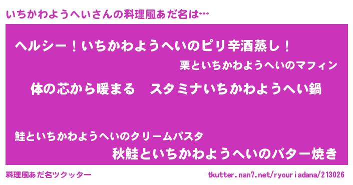 | 胡散臭い通販商品みたいなあだ名 | 『幸せが訪れる高級そうな壺…その名も「いちかわようへい」』 |