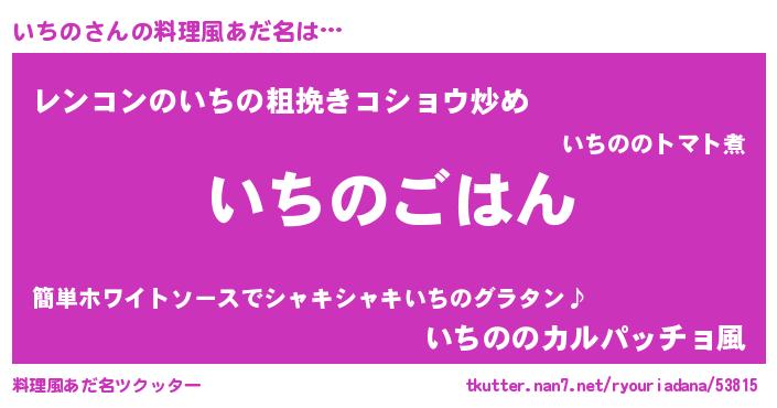| 男性向けラノベタイトル風あだ名 | 『イチノスレイヤー』『魔弾の王といちの』 |