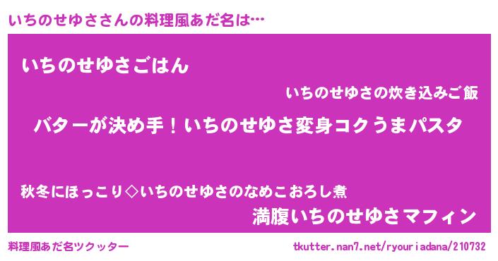 | ヘコむあだ名 | 『いちのせゆさ(震え声)』『いちを』 |