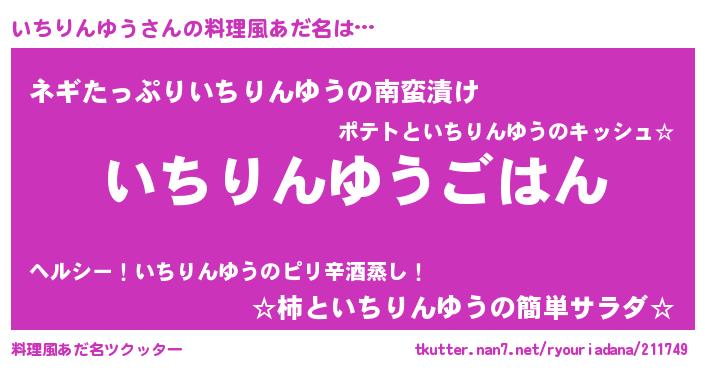 | 男性向けラノベタイトル風あだ名 | 『イチリンユウスレイヤー』 |
