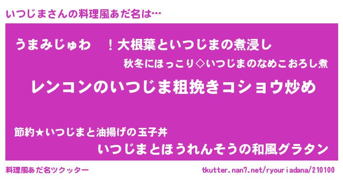 | 女子向けラノベタイトル風あだ名 | 『いつじまなんてお断りですっ。』 |
