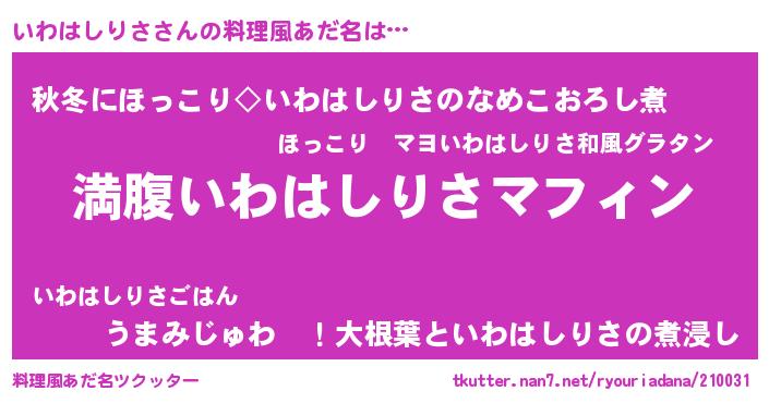 | 胡散臭い通販商品みたいなあだ名 | 『絶対に幸福をもたらす招き猫…その名も「いわはしりさ」』 |