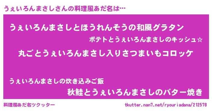 | ヘコむあだ名 | 『うぇいろんまさし(震え声)』『うぇぷりん』 |