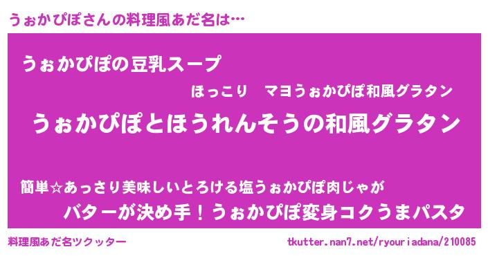 | ヘコむあだ名 | 『うぉっ子』『うぉかぴぽ(笑)』 |