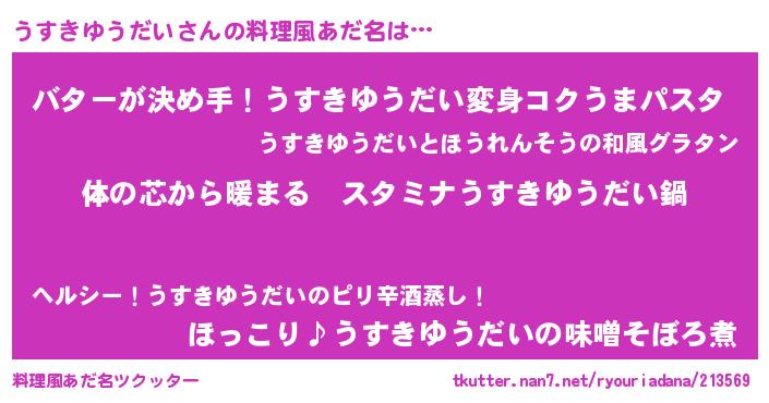 | 意味不明あだ名 | 『うすきゆうだいフォーエバー』 |