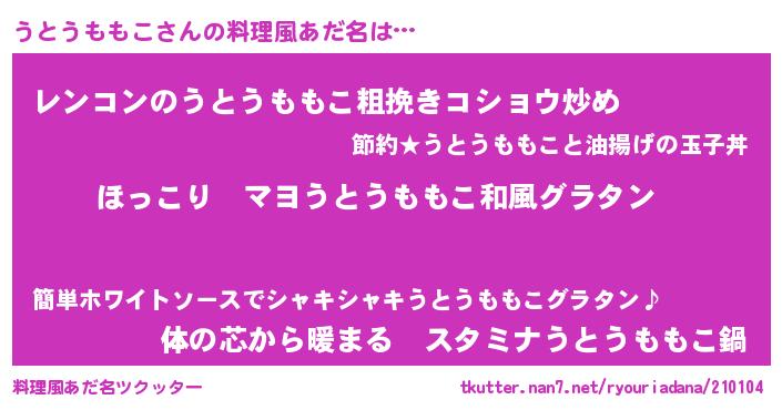 | 男性向けラノベタイトル風あだ名 | 『この素晴らしい世界にうとうももこを!』 |