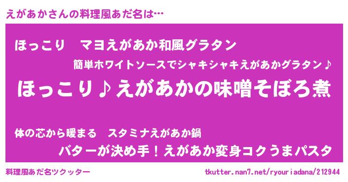 | 恥ずかしいあだ名 | 『プリティーえがあか』『エガリンリン』 |