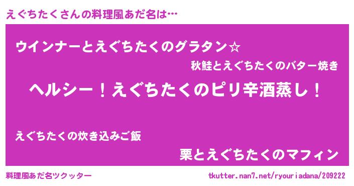 | 意味不明あだ名 | 『自称えぐちたく』『永久保存えぐちたく』 |