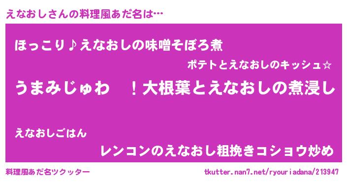 | 恥ずかしいあだ名 | 『えなっちょ』『プリティーえなおし』 |