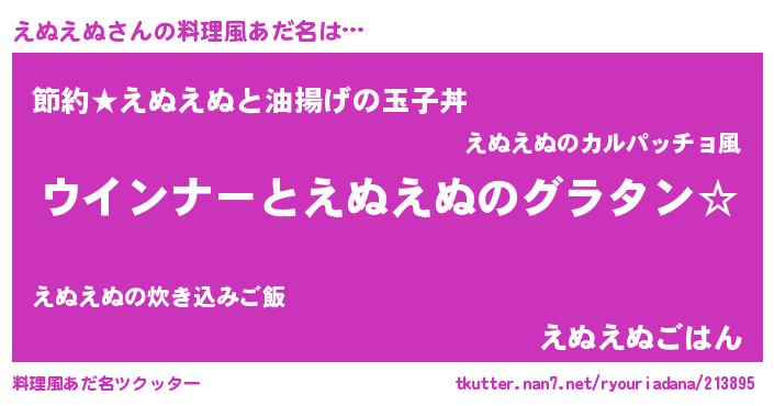 | ファンタジー風あだ名 | 『エターナルエヌエヌー』『エヌフェル』 |