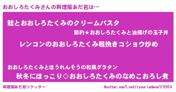 | 女子向けラノベタイトル風あだ名 | 『おおしろたくみなんてお断りですっ。』 |