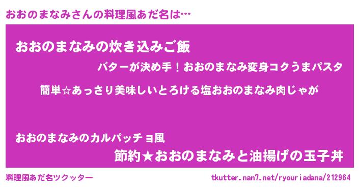 | 欧米人風あだ名 | 『ダルビッシュおおのまなみ』 |
