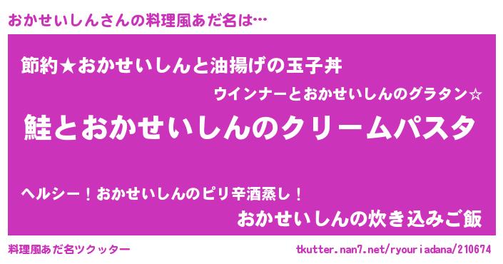 | 女子向けラノベタイトル風あだ名 | 『死神おかせいしんの再婚』 |