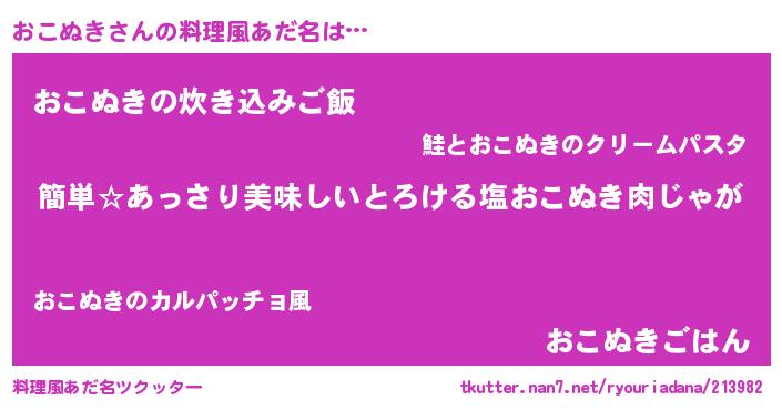 | 意味不明あだ名 | 『永久保存おこぬき』 |