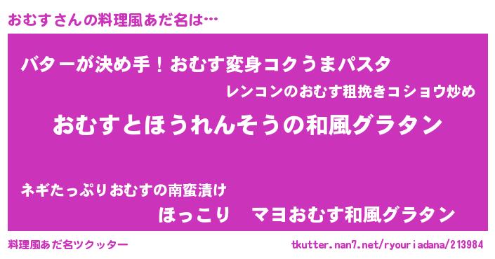 | ヒーロー風カッコイイあだ名 | 『愛の使者おむす』『仮面オムダー』 |