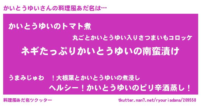| 胡散臭い通販商品みたいなあだ名 | 『億万長者になれる霊験あらたかなお札…その名も「かいとうゆい」』 |