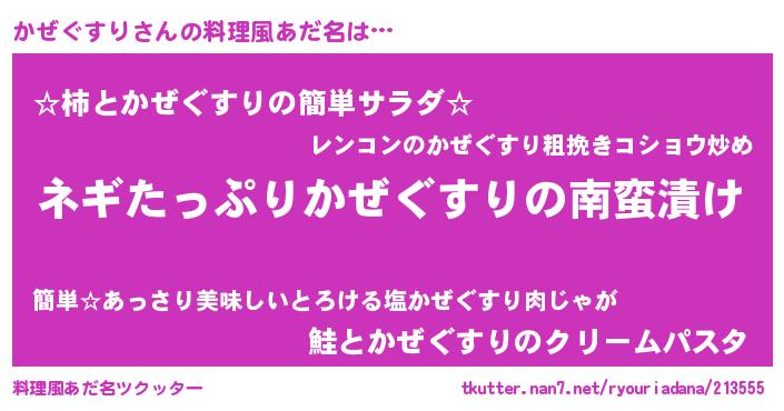 | 意味不明あだ名 | 『ペロリンかぜぐすり』『自称かぜぐすり』 |