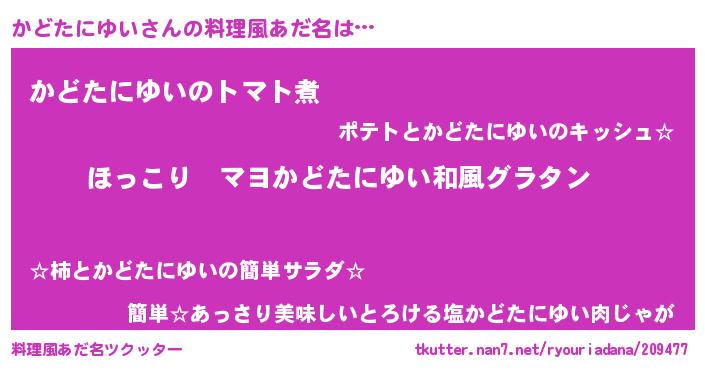 | ヘコむあだ名 | 『かどたにゆい(笑)』『かどっちょ』 |