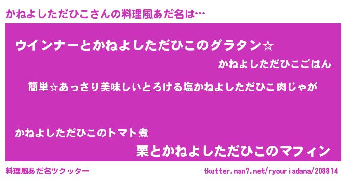 | ヘコむあだ名 | 『かねよしただひこ(笑)』『なまこ酢』 |